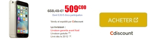 -L'iPhone 6s 32Go gris est disponible à 509€ chez Cdiscount. La livraison est gratuite et le paiement en 4 fois est possible sous réserve d'éligibilité. Les détenteurs de la carte Cdiscount profitent d'un rabais de 20% et la possibilité de financer le mobile en 3, 5 ou 10 fois. Bon à savoir, ce site marchand vous propose pour seulement 30€ de plus l'iPhone 7 à 539€, le meilleur prix pour acquérir le succeseur de l'iPhone 6.