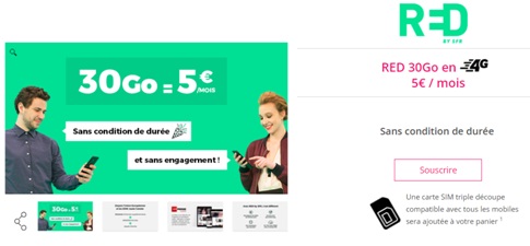 Nouvelle vente privée RED by SFR : le forfait RED 30Go au prix fixe de 5€/mois