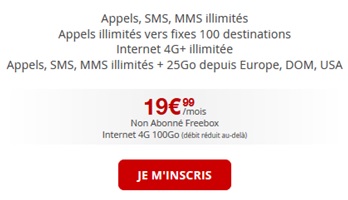 Ainsi le forfait Free intègre en roaming toute l’année 25Go par mois d’Internet mobile utilisables en 3G depuis l’Europe, les DOM, les Etats-Unis, le Canada, l’Afrique du Sud, l’Australie, l’Israël, le Mexique, la Nouvelle-Zélande, et maintenant la Suisse (au-delà : 0,009€/Mo depuis Europe, DOM et facturation au tarif en vigueur pour les autres pays). De plus, les appels, SMS et MMS sont illimités au sein de l’Europe et des DOM. Autre avantage, les appels, SMS et MMS sont illimités en local et vers la France métropolitaine depuis les autres pays à savoir les Etats-Unis, le Canada, l’Israël, l’Australie, l’Afrique du Sud et la Nouvelle-Zélande. En France métropolitaine, cet abonnement mobile embarque toujours les appels, SMS et MMS illimités mais aussi les appels illimités vers les fixes de 100 destinations. En ce qui concerne la partie Internet mobile, ce forfait Free intègre 100Go de data par mois ou la 4G illimitée pour les abonnés Freebox.