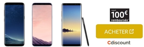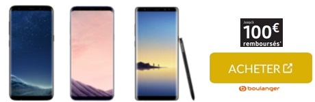 La remise de 100€ sur le Samsung Galaxy S8, S8+ ou Note 8 valable chez boulanger et Cdiscount :