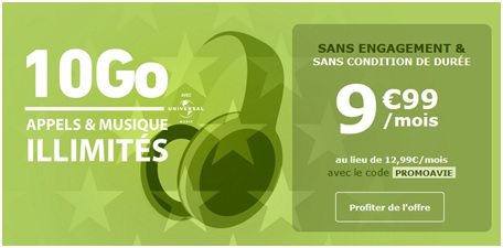 L’opérateur La Poste Mobile propose actuellement dans le cadre de son opération « Les jours Liberté », son forfait SIM 10Go à seulement 9.99€ par mois sans engagement et sans condition de durée au lieu de 12.99€ par mois. Pour profiter de cette remise mensuelle de 3€, il vous suffit d’indiquer le code réduction PROMOAVIE lors de votre souscription. La remise est appliquée dès la première facture d'abonnement La Poste Mobile.