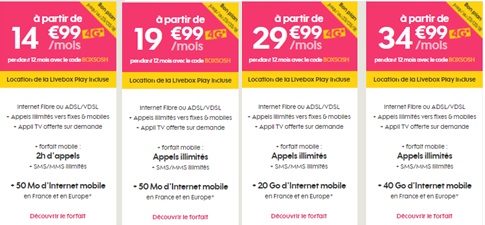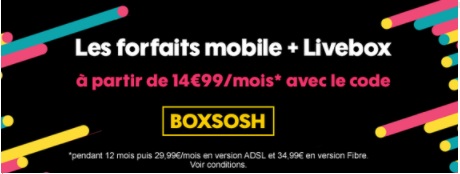 Les tarifs des formules Livebox et mobile avec le code promo BOXSOSH :