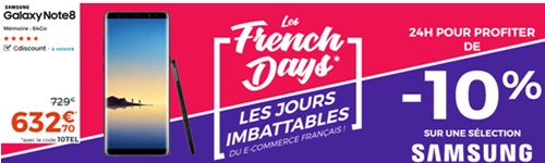 French Days : le Galaxy Note 8 à 632.70€ avec le code promo 10TEL chez Cdiscount