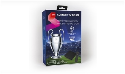 L’opérateur SFR a officialisé la semaine dernière une nouvelle solution clé en main pour faciliter l’accès aux contenus premium de SFR notamment La Champions League sur toutes les TV avec le lancement de CONNECT TV de SFR. Il s’agit d’un décodeur TV disponible que l’on soit client SFR ou non, celui-ci est compatible 4K et équipé d’une télécommande à reconnaissance vocale pour simplifier la navigation et la recherche. Cette nouveauté SFR est disponible au prix de 69€.