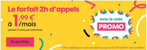 La formule 2H est en promo à 1.99€ par mois pendant 12 mois puis 4.99€ (avec le code PROMO valable jusqu’au 3 septembre à 9H). Cette offre comprend 2 heures d’appels, les SMS et MMS illimités ainsi qu’Internet 50Mo en France et en Europe. Ce forfait Sosh existe au même prix en version bloquée.