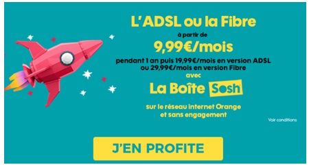 La Boîte SOSH ADSL ou Fibre sans TV et sans engagement à 9.99€ par mois pendant 1 an