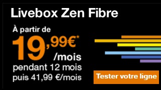 Orange met également en avant ses offres Livebox Fibre avec une remise exceptionnelle de 14€ par mois en exclu WEB ainsi que les frais de location de BOX de 3€ par mois offerts la première année et 5€ par mois pendant 1 an si vous changez d'opérateur Internet. Grâce aux remises, vous économisez 22€ par mois pendant 1 an pour toute nouvelle souscription à une offre Fibre Orange jusqu'au 03 octobre inclus. La Livebox Zen Fibre est ainsi affichée à 19.99€ par mois pendant 12 mois puis 41.99€ par mois. Les abonnements Internet chez l'opérateur historique sont soumis à un engagement de 12 mois et les frais pour le décodeur TV sont de 50€. Les frais d'accès au réseau Fibre sont offerts jusqu'au 03 octobre.