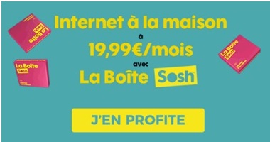 SOSH propose quant à lui une BOX sans engagement de durée à 19.99€ par mois par xDSL ou encore en promo à 19.99€ par mois au lieu de 29.99€ par mois la première année en version Fibre. La remise de 10€ est valable pour toute nouvelle souscription à la BOX SOSH Fibre jusqu'au 14 novembre inclus et sous réserve d'éligibilité technique. Cette BOX SOSH sans engagement de durée, sans frais de mise en service et sans frais de location de BOX est proposée sans TV à moins de 20€ par mois. Si vous désirez profiter de la TV, cet opérateur met à disposition une option à 5€ par mois. Et si vous décidez de changer d'opérateur pour SOSH, ce dernier vous rembourse vos frais de résiliation jusqu'à hauteur de 100€.