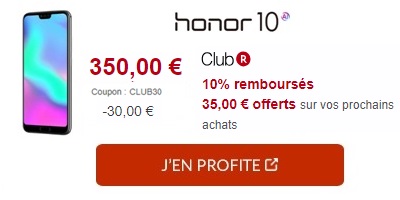 Le Honor 10 à 320€ + 10% remboursés chez Rakuten PriceMinister