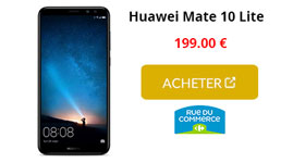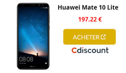 Le Huawei Mate 10 Lite en coloris noir est en ce moment à prix alléchant chez de nombreux marchands. Vendu habituellement 349 euros, vous pouvez à présent mettre la main sur cet appareil milieu de gamme à prix réduit. En effet, il est proposé au prix de 197 euros chez Cdiscount, à 199 euros sur le site rue du commerce et Fnac et enfin à 208 euros sur Rakuten.