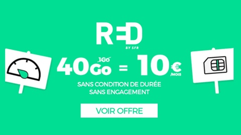 La marque 100% ligne de l'opérateur SFR met en avant son forfait avec 1Go de data à 10€ par mois jusqu'au 03 décembre inclus. Le volume data par mois passe en effet à 40Go par mois sans surcoût. Pour saisir ce forfait pas cher, il suffit d'ouvrir une nouvelle ligne mobile directement sur le site de l'opérateur RED By SFR. La carte SIM est facturée 10€ à la commande.
