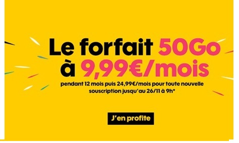 L'opérateur SOSH quant à lui propose une remise mensuelle de 15€ par mois sur son forfait 50Go. Cet abonnement utilisable sur le réseau numéro 1 en France est ainsi affiché à 9.99€ par mois au lieu de 24.99€. L'offre censée se terminer le 26 novembre à 9h est finalement prolongée jusqu'au lundi 3 décembre 9h.