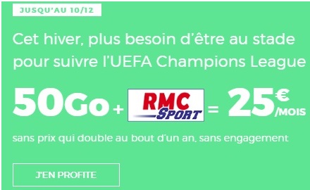 L’offre 50 Go avec RMC Sport+ SMS et MMS illimités à 25 €/mois à vie, valable jusqu’au 10 décembre