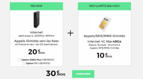 Couplez les avantages RED by SFR avec un forfait 40Go et une Box ADSL ou Fibre pour 30€ maximum !