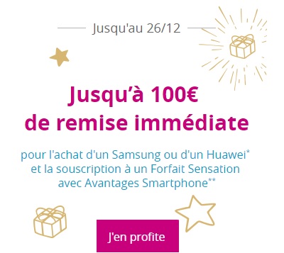 Afin de voir l’heureux élu au pied de votre sapin à Noël, rien de plus facile ! Il vous suffit de vous connecter sur le site de Bouygues Télécom (avant le 26 décembre) et de sélectionner le mobile Huawei de votre choix dans la sélection proposée. A noter que Bouygues Télécom offre également de superbes promotions sur les gammes de téléphones portables Samsung.