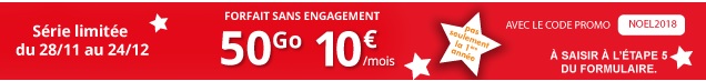 Le forfait Auchan Telecom 50Go à 10€ au lieu de 16,99€ valable encore aujourd'hui.