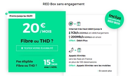 BOX RED BY SFR avec Fibre à 20€/mois et ADSL à 15€/mois (option débit+ offert et appels mobiles offerts)