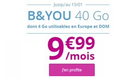Bouygues Telecom : Le forfait B&You 40Go à 9.99€ par mois sans condition de durée (MAJ prolongation jusqu'au 3 février)