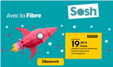 Promo SOSH : la Boîte Fibre sans engagement de durée à 19,99 €/mois pendant 12 mois