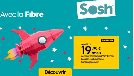 D'autres bons plans sont affichés chez SOSH pour votre abonnement Internet maison ou pour vous procurer un nouveau Smartphone. Avec les soldes d'hiver 2019, la Fibre est au prix de l'ADSL et les Smartphones profitent jusqu'à 300€ de remise immédiate jusqu'au 6 février.