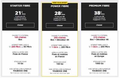 - La BOX Premium Fibre est proposée à 38€ au lieu de 56€ ou encore à 32€ puis 50€ en version ADSL.