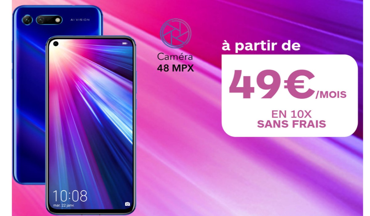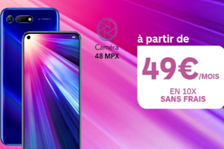Entre le 15 février et le 11 Mars 2019, Boulanger permet aux plus petits budgets de s'équiper du tout dernier Honor View 20 avec son financement exceptionnel. Ce marchand met en avant le paiement en 10 fois sans frais pour l'achat de ce Smartphone chinois doté d'un écran 'All View Display' de 6.4 pouces.