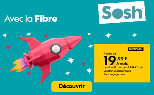 La Boîte Sosh Fibre en promo à 19.99€/mois pendant 1 an jusqu'au 3 avril