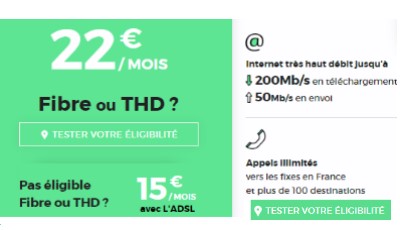 Cette offre RED BOX existe en version Fibre au prix de 22€ par mois sans engagement et sans condition de durée. Le débit théorique descendant maximum est de 200 Mb/s et le débit théorique montant est de 20Mb/s maximum, sous réserve d’éligibilité. Avec l’option Débit+ à 5€/mois, le débit descendant maximum est de 1Gbps et le débit théorique montant est de 200Mbit/s maximum.