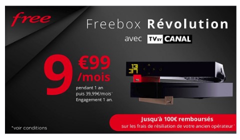 Le FAI a choisi cette fois de brader son offre Freebox Révolution avec TV by Canal par le biais d'une vente privée. Cette dernière vient de démarrer ce mardi 4 mars à 19 heures sur le site partenaire venteprivée.com. La Freebox Révolution avec TV By Canal est au prix cassé de 9.99€ par mois pendant 1 an soit une économie de 360€ la première année. Cette opération exceptionnelle prendra fin ce samedi 9 mars à 6h00. A l'issue des 12 premiers mois, ce forfait Freebox repasse au prix habituel de 39.99€ par mois, location de box incluse.