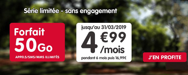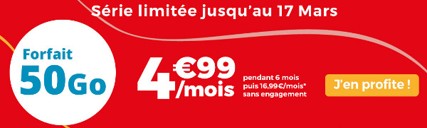 La série limitée Auchan Telecom de 50Go à 4,99€/mois pendant 6 mois, puis 16,99 €/mois