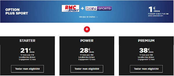 Nommée PLUS SPORT, cette option totalement dédiée au sport vous donne accès à une trentaine de chaînes, dont les différentes déclinaisons de RMC Sport, RMC Sport Live, BeIN Sports, mais aussi Equidia, ES1 ou encore Auto Moto. Suivez ainsi toutes les rencontres de l’UEFA Champions League, de l’UEFA Europa League, de la Ligue 1 Conforama, de la NBA et de toutes les autres grandes compétitions internationales chez vous. La bonne nouvelle, c’est que dans le cadre de cette promo, cette option Sport Plus est proposée à seulement 1 €/mois pendant les 12 premiers mois, avant de repasser au tarif standard de 19 €/mois. Vous pouvez donc économiser 18 €/mois sur un an tout en profitant de vos chaînes préférées.