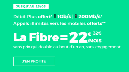 Avec sa RED Box sns engagement à bas prix, RED By SFR offre à ses abonnés éligibles à la fibre, un débit standard pouvant aller jusqu’à 200 Mb/s en téléchargement et jusqu’à 50 Mb/s en envoi. Dans le cadre de cette promo, ce débit est boosté grâce à l’option Débit Plus, facturée normalement à 5 €/mois, mais qui est actuellement offerte sans supplément, jusqu’au 25 mars à 23h59. Votre débit est ainsi multiplié par 5, vous permettant ainsi d’avoir jusqu’à 1 Gb/s en téléchargement et 200 Mb/s en envoi.