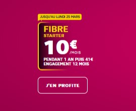 Lancée le 06 mars dernier, cette Série Limitée BOX Starter prolongée à deux reprises s'arrête ce lundi 25 mars inclus. Avec cette BOX SFR à 10€ par mois, le FAI permet à ses nouveaux abonnés de passer à la vitesse supérieure sans trop dépenser la première année. Sous réserve d'éligibilité technique, la BOX Starter en série limitée offre un débit de connexion jusqu'à 200 Mb/s. Notez que si vous n'êtes pas situés dans une zone couverte par la Fibre, cette formule est aussi au prix réduit de 10€ pendant 1 an en version ADSL.