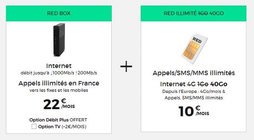 - Sa RED Box en Fibre ou THD à 22€/mois ou à 15€/mois avec l’ADSL