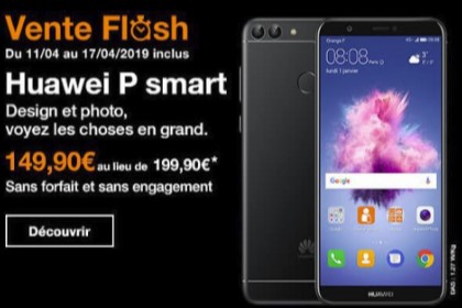 Pour offrir ce Huawei P Smart sans abonnement, vous devez passer la commande sur le site Orange avant le 17 avril. En optant pour cette solution, le mobile est débloqué tous opérateurs. Garanti 2 ans, le terminal est livré sous 72heures. Acheter le Huawei P Smart sans abonnement chez Orange