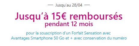 Les formules mobiles Sensation de Bouygues Telecom sont en ce moment en promo, notamment les forfaits 50Go et 70Go. Les abonnés souhaitant conserver leur numéro de mobile seront heureux d’apprendre qu’ils bénéficieront automatiquement d’une remise mensuelle de 15€/mois durant 12 mois (jusqu'au 28 avril).