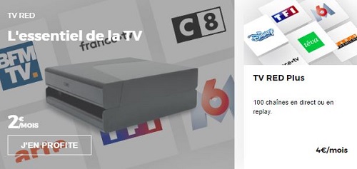 Avec l’option TV RED Plus, les abonnés bénéficient de davantage de chaînes : à savoir plus de 100 chaînes TV de qualité (liste à consulter sur le site), dont les chaînes de la TNT mais aussi de Disney Channel, Gameone, Paris Première, Téva… Elle offre le Replay, le contrôle du direct et les enregistrements, simplement en branchant sur votre décodeur un disque dur externe.