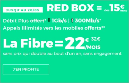 Cet abonnement accessible depuis le site Internet de la marque jusqu'au 20 mai prochain s'adresse aux nouvelles ouvertures de lignes avec ou sans conservation du numéro. Notez que dans le cadre d'un changement de FAI, RED vous rembourse jusqu'à 100€ sur les frais de résiliation de votre ancien opérateur. Enfin, sachez que la location de la RED BOX est incluse dans ce prix bas.