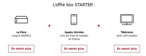 La BOX Starter de SFR est elle aussi en promo exceptionnelle à 15€/mois pendant 1 an, puis 38€/mois (location de BOX incluse).