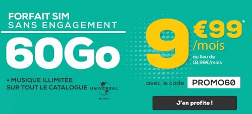 Le forfait mobile est également utilisable en Europe et dans les DOM puisqu’une enveloppe data de 10Go est allouée avec appels/SMS/MMS illimités. Le forfait propose en cadeau l’accès illimité au catalogue d’Universal Music.