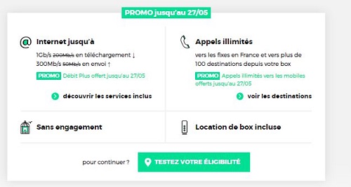 La BOX RED Fibre ou ADSL sans engagement, en promo jusqu’au 27 mai à respectivement 22€ ou 15€/mois, est l’occasion de profiter d’une offre dual-play très intéressante et avec un max d’options gratuites ! En effet, en ce moment, RED by SFR offre une connexion Internet jusqu’à 1Gb/s en téléchargement et 300Mb/s en envoi (pour la version Fibre) grâce à l’option « Débit Plus », ici offerte mais normalement facturée 5€/mois.