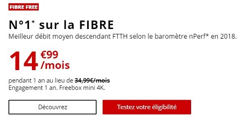 Jusqu’au 28 mai, le FAI de Xavier Niel offre la possibilité de profiter d’une box triple-play sans engagement (Internet + TV + téléphonie) pour seulement 14.99€/mois pendant 1 an, puis 34.99€/mois. Cet abonnement complet inclut en effet une connexion en Fibre optique ultra puissante (jusqu’à 1Gb/s en débit descendant et 600Mb/s en débit montant).
