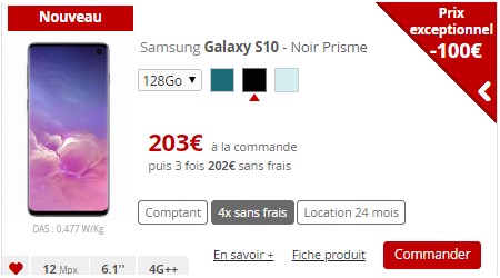 La version S10e et S10 plus sont aussi en promo avec la possibilité d'opter pour le paiement en 4 fois sans frais.