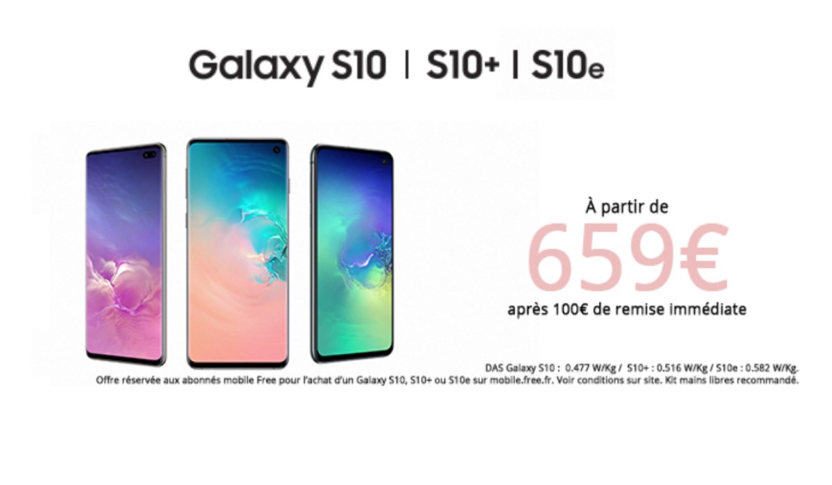 Galaxy S10 : 100€ de remise et paiement 4 fois sans frais avec l'opérateur Free Mobile