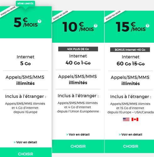 Cette série limitée est disponible sur le site de l'opérateur jusqu'au 26 juin prochain. Elle profite exclusivement aux nouvelles souscriptions avec ou sans conservation du numéro. Pour la portabilité du numéro, pensez à renseigner votre code RIO qui permettra à l'opérateur de transférer votre ligne et de résilier votre contrat auprès de votre ancien opérateur. Pour recevoir la nouvelle carte SIM, vous devez la régler à la commande, elle coûte 10€.