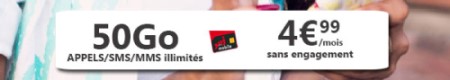 L'opérateur NRJ Mobile propose lui aussi un forfait illimité à 5€ par mois avec une enveloppe Web conséquente de 50Go par mois. La Série Limitée est au prix réduit de 4.99€ par mois durant les 6 premiers mois uniquement. Elle est aussi proposée sans engagement de durée, vous pouvez donc profiter de la remise de 12€ par mois pour vos 6 premières factures puis changer d'offre ou d'opérateur sans frais. Pour saisir cet abonnement ultra-compétitif, vous avez jusqu'au 18 juillet inclus. La carte SIM à 10€ est aussi facturée à la commande avec ou sans la portabilité du numéro de mobile.