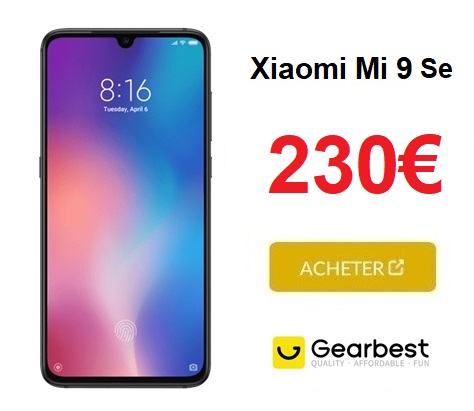 Le Xiaomi Mi 9 SE à 230 euros (avec le code M9SE64BLACK) :