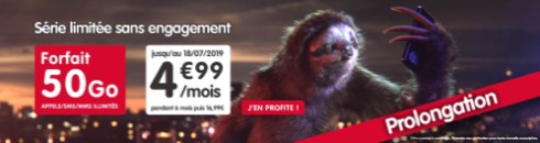 Le MVNO NRJ Mobile met à disposition une offre très intéressante qui profite les six premiers mois d'un tarif exceptionnellement bas. Vous pouvez en effet pour moins de 5€ par mois profiter d'une généreuse enveloppe web de 50 Go de data et des communications illimitées. A l'issue de la promo, cette Série Spéciale repasse à son tarif initial de 16,99€.