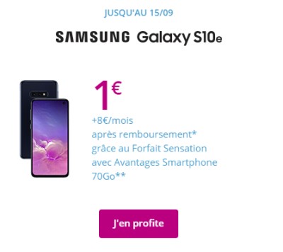 Pour résumer, le Samsung Galaxy S10e est en promo à 1€ (ODR de 100€ comprise) en payant chaque mois 38.99€ par mois la première année puis 58.99€ par mois.