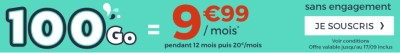 Jusqu'au 17 septembre incluse, Cdiscount Mobile propose un forfait mobile pas cher avec une grosse enveloppe Web. Son offre affichée à 9.99€ par mois pendant 12 mois puis 20€ par mois comprend en effet 100Go de données mobiles jusqu'en 4G. Pour la partie téléphonie, cet abonnement portable inclut les appels, SMS et MMS illimités en France. Pour vos voyages en Europe et DOM, ce forfait vous accompagne avec 5Go de données en 3G+, ainsi que les appels, SMS et MMS illimités. La carte SIM est facturée 10€ à la commande.